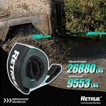 RETRUE Tow Strap with Triple Reinforced Loops 4in x 20ft 28,660lbs Break Strength Off Road Recovery Strap Emergency Heavy Duty Towing Rope for SUV, UTV, ATV, Truck