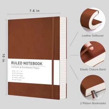 RETTACY Lined Journal Notebook, 2-Pack, 204 Numbered Pages per Pack, B5 Medium 7.6" × 10", Leather Softcover, 100 GSM Thick Paper, for Writing, Work, School (Black & Brown)