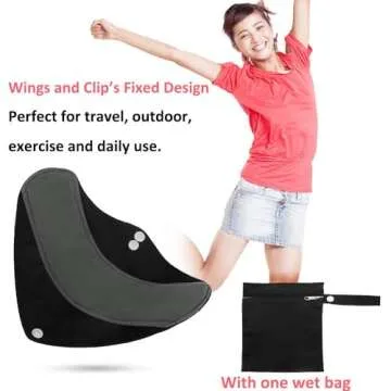 Designed with your active lifestyle in mind, our pads come equipped with a secure snap-on wing that stays firmly in place, preventing movement and potential leaks during travel, workouts, or daily errands. This practicality is complemented by a washable wet storage bag, allowing you to discreetly carry used pads without worry. The bag features a zippered compartment to keep everything protected and a handy handle for easy transportation.