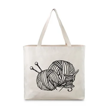 Reusable Canvas Bag - Large Tote Bag with Printed Knitting Theme