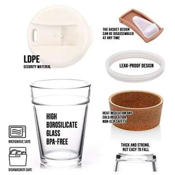 Crafted with high-grade glass, this reusable cup encourages an eco-friendly lifestyle, significantly reducing the unnecessary waste caused by single-use paper cups. Unlike ordinary cups, its unique cork band not only protects your hands from the heat but also adds a touch of natural elegance. Easy to clean, simply place the glass cup and lid on the top rack of your dishwasher, while the silicone parts require a quick hand wash for longevity.