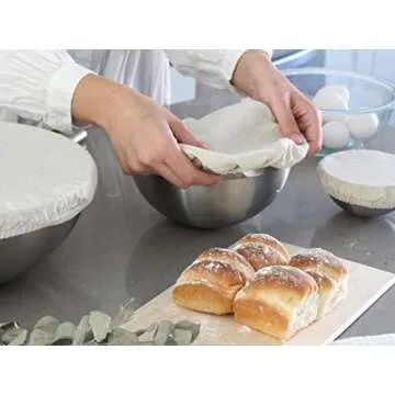 Reusable Fabric Bowl Covers for Bread Proofing - 4 Pieces, Washable and All-Natural 100% Cotton Cloth Bowl Covers for Bread Rising - Elastic Closure Fits Multiple Bowl Sizes (Off-White)
