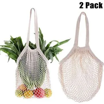Reusable Grocery Mesh Bags Organic Shopping Bags Produce Net Bags with Long Handle for Fruit Vegetable Storage (2)
