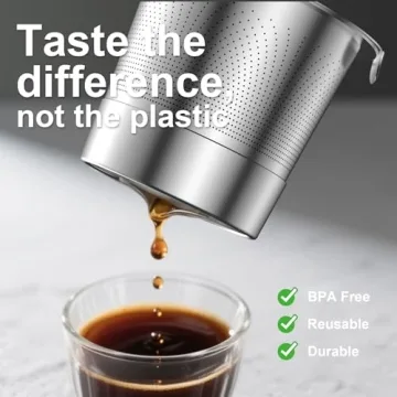 Show more Discover the ultimate solution for coffee lovers with our Reusable K Cups for Keurig. These full stainless steel refillable K Cups are designed not only to enhance your brewing experience but also to prioritize your health and the environment. Say goodbye to the plastic taint that sometimes lingers in your coffee and embrace the pure, unaltered flavor that only high-grade 304 stainless steel can provide. The innovative Stratum Flow Technology optimizes the extraction process, ensuring you enjoy a rich and robust cup of coffee every time. Each cup features a dual-handle lid that assures easy handling and portability, along with an ergonomic design that reflects our commitment to user-centric innovations. Perfect for those who expect both quality and safety in their brewing tools.