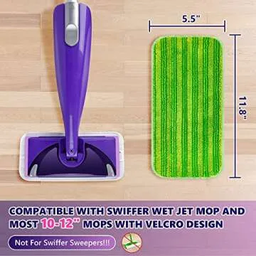 Show more If you're looking for a way to elevate your cleaning routine, look no further than our premium mop pads compatible with the Swiffer Wet Jet Mop. These pads, measuring 11.8 x 5.5 inches, are expertly designed to ensure a snug fit, allowing maximum efficiency during your cleaning sessions. Unlike standard replacements, our innovative microfibre material enhances friction, resulting in an effective cleaning without damaging your floors. Say goodbye to stubborn stains, hair, and footprints with ease!