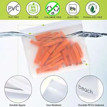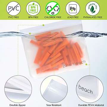 Reusable Storage Bags - PINE BEACH | Safe Ziploc Leakproof Seal, BPA & Silicone Free, Best Washable Eco Stasher for Lunch Food Travel (6)