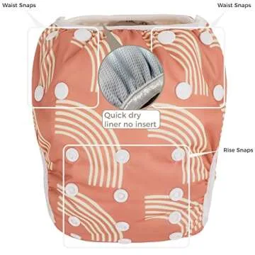 Show moreIntroducing the Reusable Swim Diapers and Wet Bag by Nora's Nursery, the ultimate swim solution for your little ones! This pack of three tropical print swim diapers combines function and fun, designed to keep your baby comfortable and stylish while swimming. Crafted with a unique Athletic Wicking Jersey, these diapers dry quickly, ensuring a worry-free swimming experience for both parents and children. The adjustable snap layout allows these swim diapers to grow with your child, accommodating babies and toddlers from 10 to 35 pounds. This adaptability means that you save both time and money—no more frequent size changes as your little one grows!