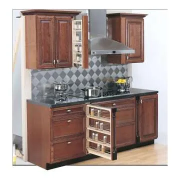 - Installation: Simple installation between cabinets during new cabinet construction, includes wood filler and three adjustable shelves with chrome rails