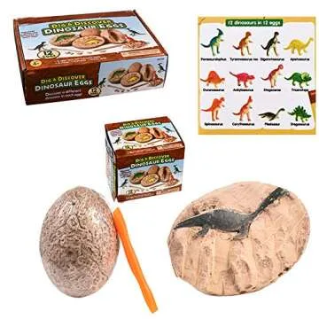 Revanak Dinosaur Eggs Kit Dig it Up - 12 Packs Mystery Excavation Adventure Discover Dinosure Eggs Toys- Science STEM Learning Kids Activity and Imagination Development (12 Packs)