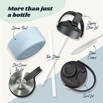 Revelist Sports Water Bottle - 32 Oz, 3 Lids (Straw Lid, Spout & Screw Top) with Boot, Vacuum Insulated Stainless Steel, Double Walled, Reusable Water Flask, Metal Canteen - Mist Blue