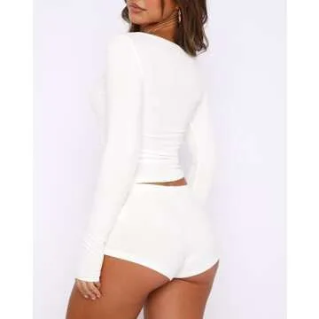 REVETRO 2024 Fall Womens Pajama Sets Sexy PJ Shorts 2 Piece Long Sleeve Lounge Set Sleepwear with Button Down White S