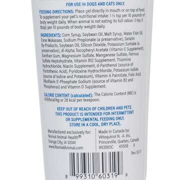 Show moreIf you're looking for a way to boost your pet's health and help them achieve a healthy weight, look no further than the Doc Roy's FORTI CAL Gel from Revival Animal Health. This high-calorie, nutrient-rich supplement is designed specifically for dogs and cats, ensuring that your furry friends receive the extra energy they need during critical times such as recovery from illness or increased physical activity. Available in a delicious roast beef and liver flavor, the gel is not only nutritious but also enticing, making it easy for pets to consume.