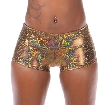 Show moreIntroducing the Revolver Fashion/Funstigators Festival Clothing Women's Holographic Booty Shorts, the perfect fusion of style, comfort, and durability! Crafted for those who love to shine and stand out, these booty shorts feature an athletic fit designed with a wide center crotch gusset that ensures coverage and freedom of movement during any activity. Whether you're hitting the stage, dancing at a festival, or enjoying a day out with friends, these shorts are made to embrace your energy and spirit. The glorious gold disco holographic fabric sparkles brilliantly, ensuring you are the center of attention wherever you go.