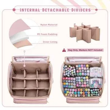 Rexmica Large Marker Organizer Case for 180 Markers - Ideal Storage for Art Supplies with Dividers and Strap, Pink