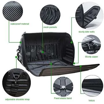 Show more Introducing the ultimate solution for organized storage in your vehicle—the Car Trunk Storage Organizer. This versatile product includes not only a spacious trunk organizer but also an adjustable shoulder strap, allowing you to transport your belongings with ease. Designed with a powerful storage function, the inside of this innovative bag features a mesh band, elastic bands, and Velcro for secure and convenient storage of all your essentials. The durable shell comes with a nonslip bottom and sturdy construction, ensuring your items stay in place, no matter the drive.