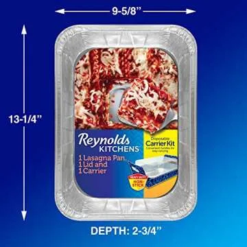 With the Reynolds Disposable Lasagna Pans, you're always ready to bring and serve delicious meals wherever you go. This product is ideal for holidays, family reunions, and any other occasion where you’ll be sharing food with loved ones.