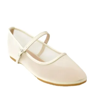 RF ROOM OF FASHION Women's Buckle Strap Mesh Mary Jane Ballet Flats (Ivory, Size 7)