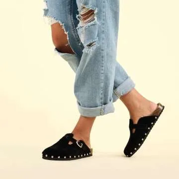 Show more Introducing the ultimate blend of style and comfort with our exquisitely designed clog shoes. Crafted from soft faux suede, these clogs showcase a unique retro profile, making them a staple for any fashion-forward wardrobe. The intelligent design features a layer of cushy foam atop a contoured footbed, ensuring exceptional support and a cozy fit throughout the day. With a modest heel height of 1 inch, these clogs are perfect for those who appreciate a little elevation without sacrificing comfort. The TPR rubber outsole provides durability and stability, making them suitable for any setting — from casual outings to dressy events.