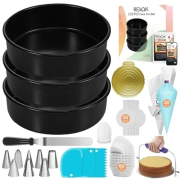 Elevate your baking experience with the RFAQK 133PCs Round Cake Pans Set, an all-in-one solution perfectly tailored for both novice bakers and seasoned pastry chefs. This exceptional baking kit includes three indestructibly crafted 8-inch non-stick cake pans that promise even heat distribution and effortless release, ensuring that your desserts maintain their shape and flavor with every bake. The quality of the pans, made with durable materials, surpasses expectations, allowing...