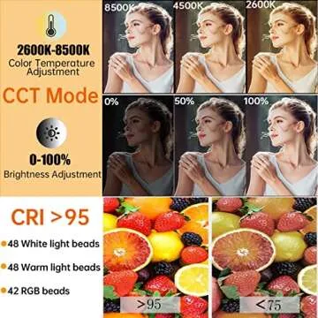 Elevate Your Photography and Videography with the incredible RGB Video Camera Light, a portable bi-color LED panel that brings flexibility and creativity to your shooting experience. With an impressive integration of 96 bi-color LED beads and 42 RGB color LED beads, this light offers an illuminance of up to 1000Lux (0.5m). Adjust the color temperature from 2500 to 8500K, or engage the HSI mode for stepless dimming that ranges...