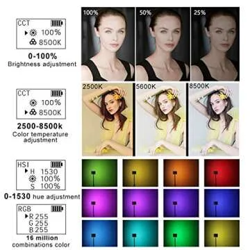 RGB Video Light Led Panel Portable Mini Built-in 7.4V 3300mAh Rechargeable Battery Light 1530°Full Color 2500-8500K with Aerometal Alloy Shell for Camera Photography Youtube Studio Filming Recording