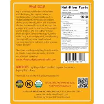 When comparing Rhapsody Organic Koji with other commercially available starter cultures, it stands out due to its artisanal production methods rooted in Vermont's rich agricultural tradition. Many competitors offer mass-produced koji that may lack the same complexity and flavor components. Rhapsody’s dedication to organic ingredients ensures that every batch delivers superior taste and doesn't compromise on health benefits, as seen in the overwhelmingly positive user reviews emphasizing its unparalleled quality.