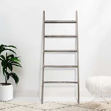 RHF Extra Thick Rustic Wood Blanket Ladder - Perfect for Cozy Spaces & Decor