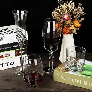 RHFF Halloween Skull Wine Glass, Skeleton Ghost Hand Wine Glass, Halloween Drinking Glasses, Skeleton Hand Goblet, Hotel Family Halloween Party Favors for Adults (C)