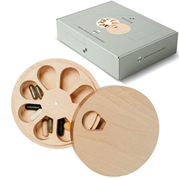 Show more Introducing the Rhife Pill Hive - Weekly Pill Organizer, an exquisite blend of functionality and elegance. Crafted from premium beech wood, this organizer features seven spacious compartments designed to hold your daily vitamins and supplements with style. Its stylish design transforms a mundane item into a decorative piece that complements any countertop or decor. Say goodbye to the traditional plastic organizers; the Rhife Pill Hive stands out not only for its aesthetic appeal but also for its practicality. The gentle wood grain adds a natural touch, making it a welcome addition to your home or office.