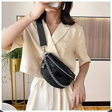 Show moreIntroducing the stunning Rhinestone Chest Bag for Women, an exquisite blend of style and functionality that takes your accessory game to the next level. This chic fanny pack is meticulously crafted from premium leather and adorned with bright, sparkling crystals, making it a standout choice for any occasion—be it travel, parties, or casual outings. With its eye-catching design, it’s perfect for those who want to make a statement without sacrificing practicality. Featuring a compact size of 8.66" x 5.9" x 2.75", this bag effortlessly fits your essentials like your smartphone, cash, lipstick, and keys, while keeping your hands free. Whether worn as a waist bag, chest bag, or crossbody, it adapts seamlessly to your personal style and comfort needs. Get ready to turn heads and garner compliments with this fashionable yet functional piece!