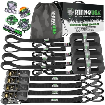 Show moreIntroducing the Rhino USA Medium Duty Ratchet Tie Down Set, a high-quality and durable solution for all your cargo securing needs. Proudly American-owned and family-operated, this brand is built on the foundation of trust and craftsmanship, ensuring that you are supporting a father-son business while investing in your equipment. Each ratchet tie-down features an electro-plated zinc coating that not only protects against rust but also enhances durability, ensuring that these straps can withstand the rigors of transport. The ergonomic padded handle provides comfort during use while the coated full bend S-hooks guarantee a secure attachment.