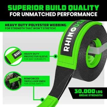 Show moreIntroducing the Rhino USA Recovery Tow Strap, your ultimate ally for emergency situations on the road and off! Measuring 3 inches wide and 20 feet long, this rugged strap boasts an impressive break strength of 31,518 lbs, making it suitable for everything from light trucks to ATVs and UTVs. Crafted from high-quality, durable polyester, it promises to withstand the challenges of towing and recovery in even the harshest conditions. With a commitment to excellence from an American-owned family business, you can trust that Rhino USA prioritizes both quality and customer support, ensuring you feel confident and secure during every use.