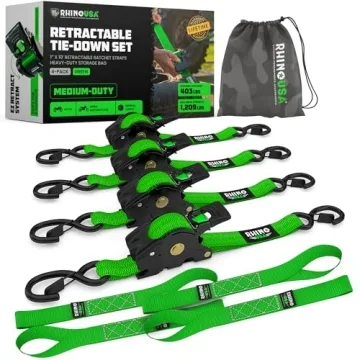 Rhino USA Retractable Ratchet Tie Down Straps.