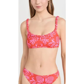 Show moreIntroducing the Rhode Women's Bibi Bikini Top in the vibrant Anjuna print, perfect for those sunny days by the beach or lounging poolside. Crafted from a premium blend of 80% nylon and 20% spandex, this bikini top provides both style and comfort. The scoop neckline offers a flattering fit, while the braided straps not only add a touch of uniqueness but also provide excellent support for all your aquatic adventures. Embrace the bold red tones and intricate patterns that capture the essence of summer.