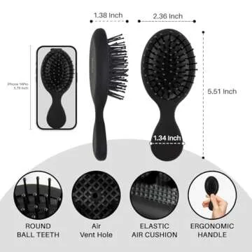 RHOS Mini Hair Brush for Women,Men and Kids-Travel Size Hair Brush for Purse,Pocket,backpack-Small Cushion Paddle Brush with Soft Bristles-Mini Detangler Brush for All Hair Types(1 Pack-Black)