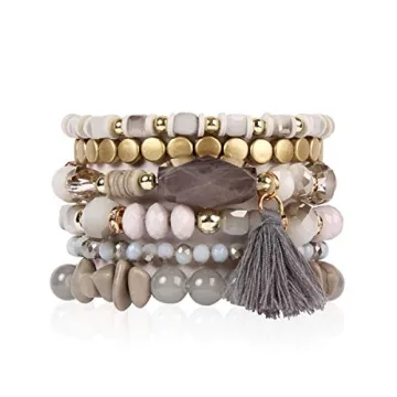 Show moreIntroduce a touch of elegance and versatility to your jewelry collection with the RIAH FASHION Coin Bead Multi Layer Versatile Statement Bracelets. Meticulously crafted by skilled designers in the heart of NYC and LA, this stackable beaded strand bracelet set stands out for its unique combination of materials and design. The bracelets feature multi-strands adorned with an array of captivating bead styles, including natural stones, faux pearls, and striking turquoise beads, all enhanced by shimmering sparkly crystals and playful tassel charms. Specifically designed to be both fashionable and affordable, these bracelets are not just accessories; they are a statement of style and sophistication that you'll cherish for years to come.