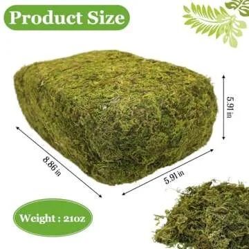 Show more This artificial fake moss is a game changer for anyone looking to enhance their craft projects or home decor. Weighing in at a robust 1.3 lb (21 OZ), this vibrant greenery not only adds a burst of color, but it also brings depth and dimension to your creations. With its vivid color and realistic appearance, it becomes an essential element for crafting beautiful fairy gardens, decorating for weddings, or transforming wall spaces and centerpieces into stunning visual focal points.