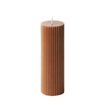 Ribbed Pillar Candles 2x6'' Inches Tall Brown Fluted Column Modern Home Décor Soy Wax Handmade Unscented (4-Pack), Aesthetic Decorative Textured Candle Set