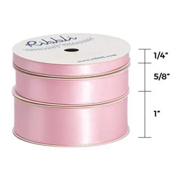 Ribbli 3 Rolls Double Faced Solid Satin Light Pink Craft Ribbon,Total 30 Yards,(1/4 Inch x 10-Yard,5/8 Inch x 10-Yard,1 Inch x 10-Yard),Use for Bows Bouquet,Gift Wrapping,Baby Shower