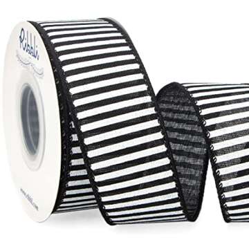 Ribbli Black and White Stripe Wired Ribbon - Perfect for Crafts and Decorations