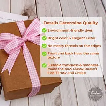 Show more If you're looking to add a touch of elegance to your DIY projects, the Ribbli Light Pink and White Gingham Ribbon is your perfect choice. This gorgeous plaid ribbon, made of 100% polyester, offers a perfect blend of durability and beauty. With a continuous length of 10 yards per spool, this ribbon is designed to inspire and meet all your creative ideas without any splices. Its double-faced feature ensures that not only does it look stunning on the outside, but the color and texture are consistent on both sides, making it an ideal choice for high-quality applications. The finely woven edges add a polished finish that elevates your projects.