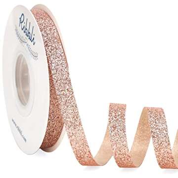 Ribbli Rose Gold Glitter Ribbon,Gift Wrapping Ribbon Rose Gold Cut Edge Christmas Ribbon for Crafts, ChritmasTree Decoration,Ornaments Decoration,Home Decor, 3/8 Inch x 25 Yards