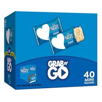 Show moreIntroducing Rice Krispies Treats Mini Squares Original, your go-to snack for every occasion. These delicious, miniature-sized treats are perfect for the whole family, providing a delightful combination of puffed, oven-toasted rice cereal and the soft, gooeyness of marshmallows in every bite. Brought to you by a beloved brand known for its classic snacks, these treats carry the same irresistible taste and crispy texture that have made Rice Krispies Treats a household name. With only 45 calories per bar and no high fructose corn syrup, you can indulge without guilt. Each 15.5oz Grab n' Go box contains 40 individually wrapped mini squares, ensuring freshness and convenience every time you reach for one.