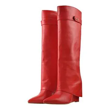 Show moreStep into style and comfort this season with the Richealnana Women's Pointy Toe Pull On Wedge Heel High Heel Knee High Boots. Designed for the modern woman, these stunning boots feature a chic 4.72-inch wedge heel that elevates your entire look while providing the confidence to take on any occasion. Crafted from vegan-friendly materials, these boots not only embody elegance but also align with a conscious lifestyle. The pointed toe design offers a classy silhouette, making them perfect for parties, proms, nightclubs, or everyday wear. Slip into these versatile boots effortlessly, thanks to their innovative pull-on feature, ensuring you look effortlessly stylish at any event.