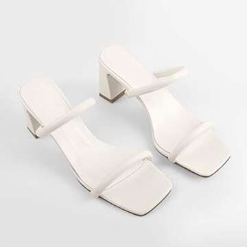 Richealnana Women's Square Toe Chunky Heels Pull On Mule Slides Two Straps Block Heel Open Toe High Heel Sandals Dress Shoes For Party Prom Slip On White US 9