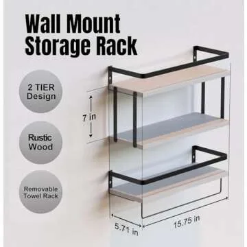 RICHER HOUSE 2+1 Tier Wall Mounted Floating Shelves Set of 2, Rustic Wood Wall Shelf with Metal Frame, Extra Storage Rack for Bathroom, Kitchen, Bedroom with Tissue Rack & Towel Bar - White