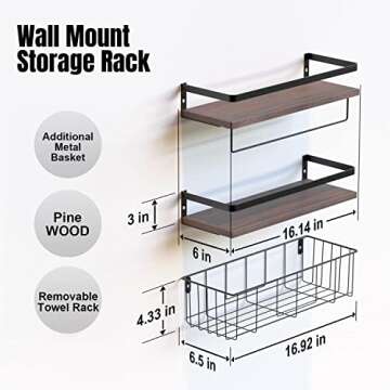 RICHER HOUSE Floating Shelves with Toilet Paper Basket Set, Rustic Wall Shelves with Removable Towel Bar, Farmhouse Floating Bathroom Shelves for Kitchen and Bedroom - Rustic Brown