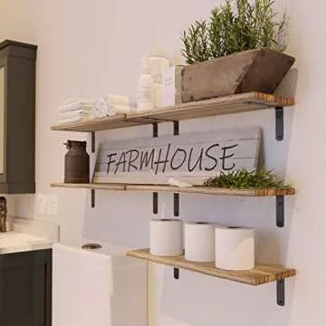 RICHER HOUSE Rustic Wood Shelves Set of 5, Farmhouse Style Floating Shelf for Wall Décor, Hanging Shelves for Bathroom, Bedroom, Storage, Kitchen, Living Room - Carbonized Black