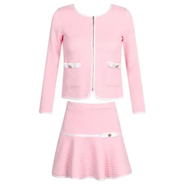 Richie House Girls' Elegant Knit Suit with Skirt RH1963-G-9/10 Pink (White)