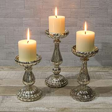 Richland Ribbed Unique Mercury Glass Pillar Candle Holder Set of 3